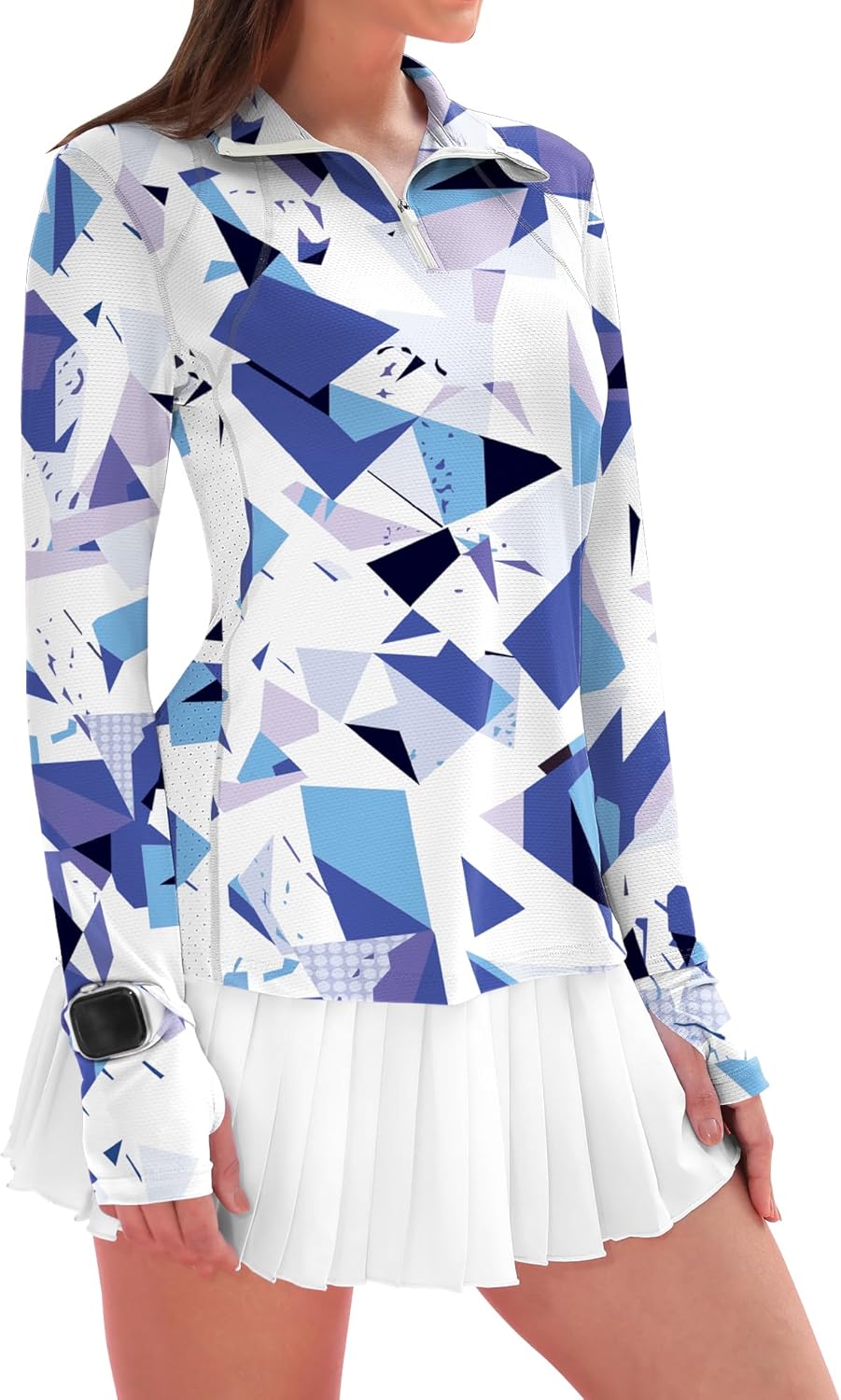 Womens Long Sleeve Golf Shirts Sun Protection 1/4 Zip Pullover Summer Quick Dry Athletic Hiking Running Workout Tops
